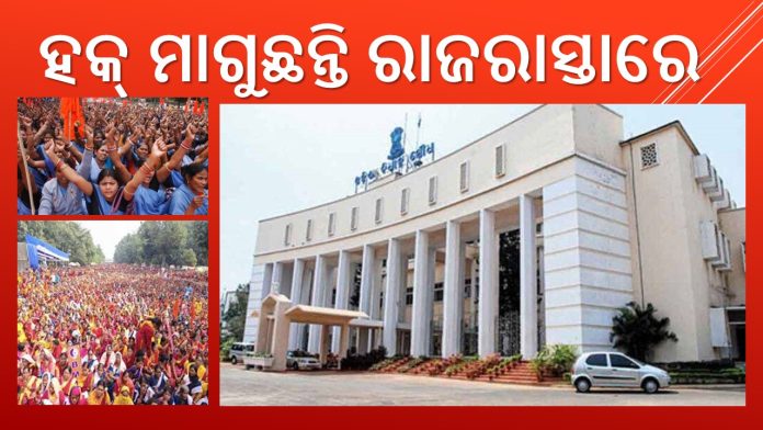 ଅନ୍ୟପଟରେ ବିଧାନସଭାରେ ହଜାର ହଜାର ସରକାରୀ ଓ ଚୁକ୍ତିଭିତ୍ତିକ କର୍ମଚାରୀମାନେ ହୋହାଲ୍ଲା କରୁଛନ୍ତି। ପ୍ରାଥମିକ, ହାଇସ୍କୁଲ ଶିକ୍ଷକ, ଅଧ୍ୟାପକ, ଡାକ୍ତର, ଆଶାକର୍ମୀ, ଗାଁ ସାଥୀ, ଅଙ୍ଗନବାଡ଼ି କର୍ମୀ, ବନ କର୍ମଚାରୀମାନେ ବାରମ୍ବାର ବିଧାନସଭା ସାମ୍ନାରେ ଧାରଣାରେ ବସୁଛନ୍ତି। ସରକାର କେମାନଙ୍କୁ ପ୍ରତିଶ୍ରୁତି ଦେଇ ଚାଲୁଛନ୍ତି। କିନ୍ତୁ ପ୍ରତିଶ୍ରୁତି ପୂରଣ ହେଲା ବେଳକୁ ବହୁ ସମୟ ଗଡ଼ି ଯାଉଛି। ଏପରିକି ଅନେକଙ୍କ ପ୍ରାଣ ଚାଲିଯାଉଛି।